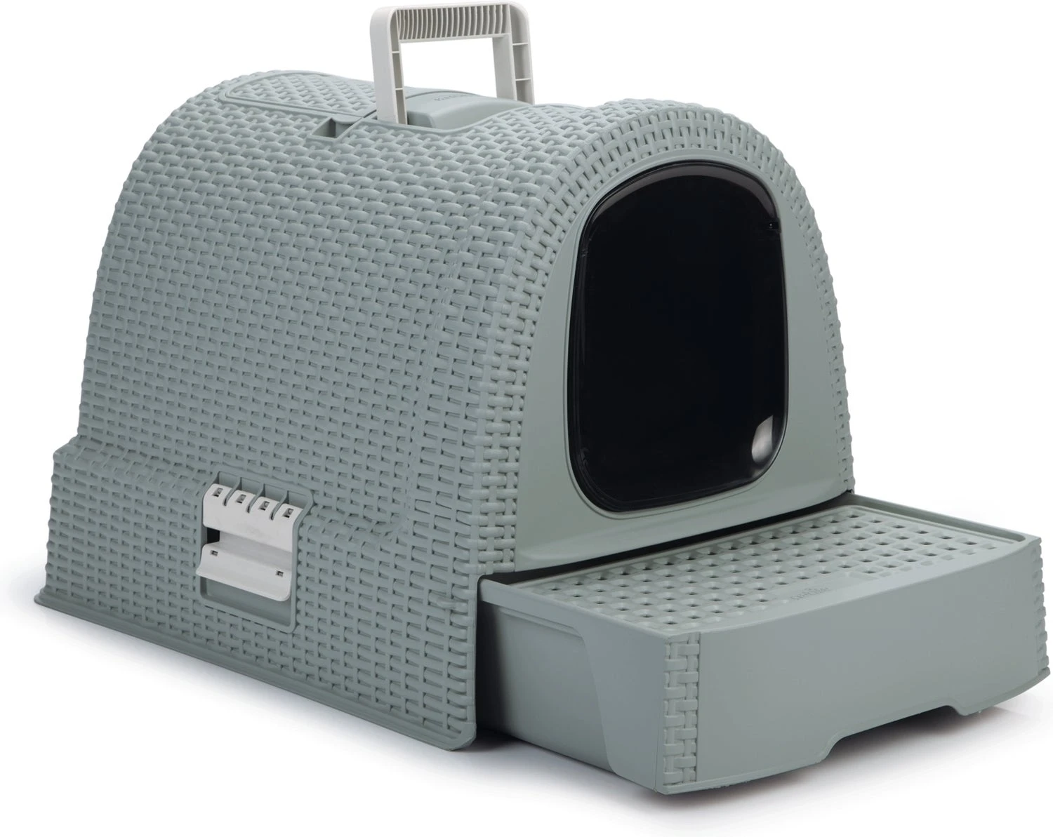 Een schitterend uitziende design kattentoilet van het merk Curver. Dit kattentoilet is gemaakt van het oersterke materiaal Rattan, een hoogwaardig gevlochten kunststof. De kattenbak is voorzien van een handig plateau met gaatjes dat fungeert als een soort schoonloopmat omdat er geen kattengrit meer blijft plakken onder de pootjes van je kat. Daarnaast is de kattenbak voorzien van een handige uitschuiflade waardoor je in één snelle oogopslag kunt controleren of deze al aan verschoning toe is. Niet alleen een aanwinst voor jou en je kat, maar ook voor je interieur!