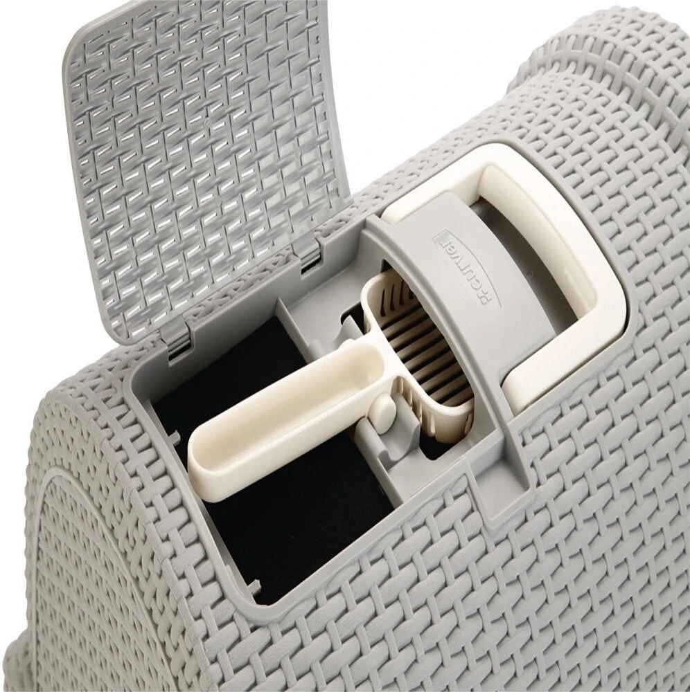 De kattenbak Style van Curver heeft een uitschuifbare gritbak waardoor het verschonen van het kattentoilet nog eenvoudiger is. Het toilet heeft een schepje voor de uitwerpselen en een opbergruimte in de bovenzijde voor dit schepje.