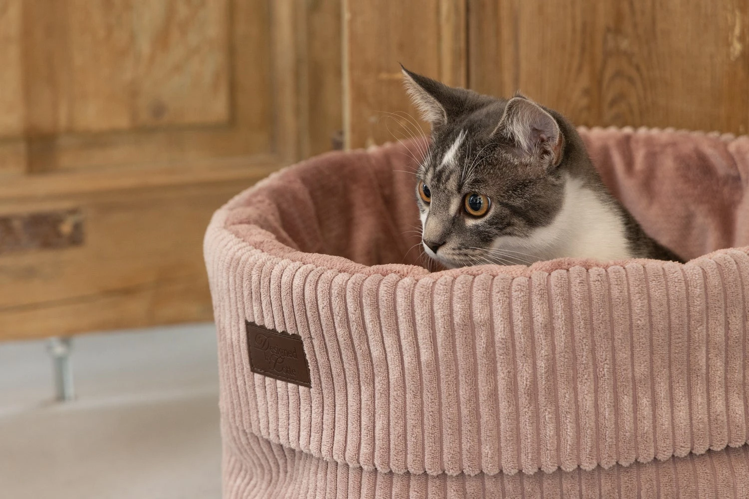 Deze super mooie Designed by Lotte Kattenmand Ribbed is ontwikkeld volgens de laatste trends. Deze kattenmand is te herkennen aan de geribbelde stof. Deze stof is super zacht, wat zorgt voor extra comfort voor jouw kat. Door de hoge opstaande rand en de ronde vorm, kan jouw kat zich heerlijk opkrullen en verstoppen in deze mand. Vind je de rand te hoog? Dan kan je deze gemakkelijk nog een keer omslaan. Het uitneembare kussentje, gevuld met siliconenvezel, draagt bij aan extra ligcomfort. Je kan de mand ook gebruiken als opbergmand voor bijvoorbeeld al het kattenspeelgoed. Is het uitneembare kussen of de mand vies? Dan kunnen beide gewassen worden in de wasmachine op 30 graden. – Ribstof – Uitneembaar kussen – Kussen en mand uitwasbaar op 30 graden in de wasmachine – Verkrijgbaar in 2 verschillende kleuren Afmeting: 50x50x35