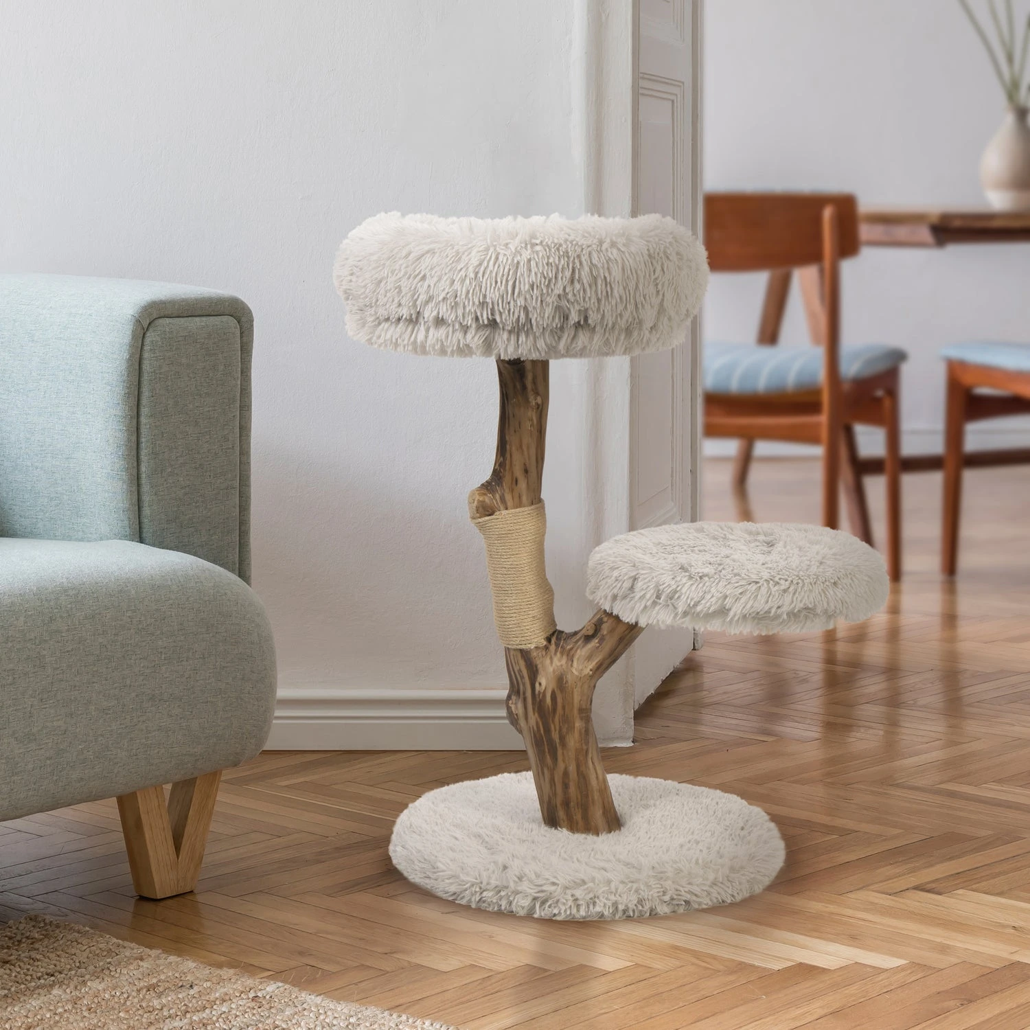 Een kat heeft meerdere krabplekken nodig in huis, daar kan de Designed by Lotte Zora er een van zijn. Deze stijlvolle krabpaal is gemaakt van natuurlijk hout en afgewerkt met een zachte pluche stof. De twee ligplekken zijn goed gevuld, zodat het lekker zacht ligt voor de kat. De hoezen kunnen er bovendien af worden gehaald en zijn uitwasbaar in de wasmachine op 30 graden.
