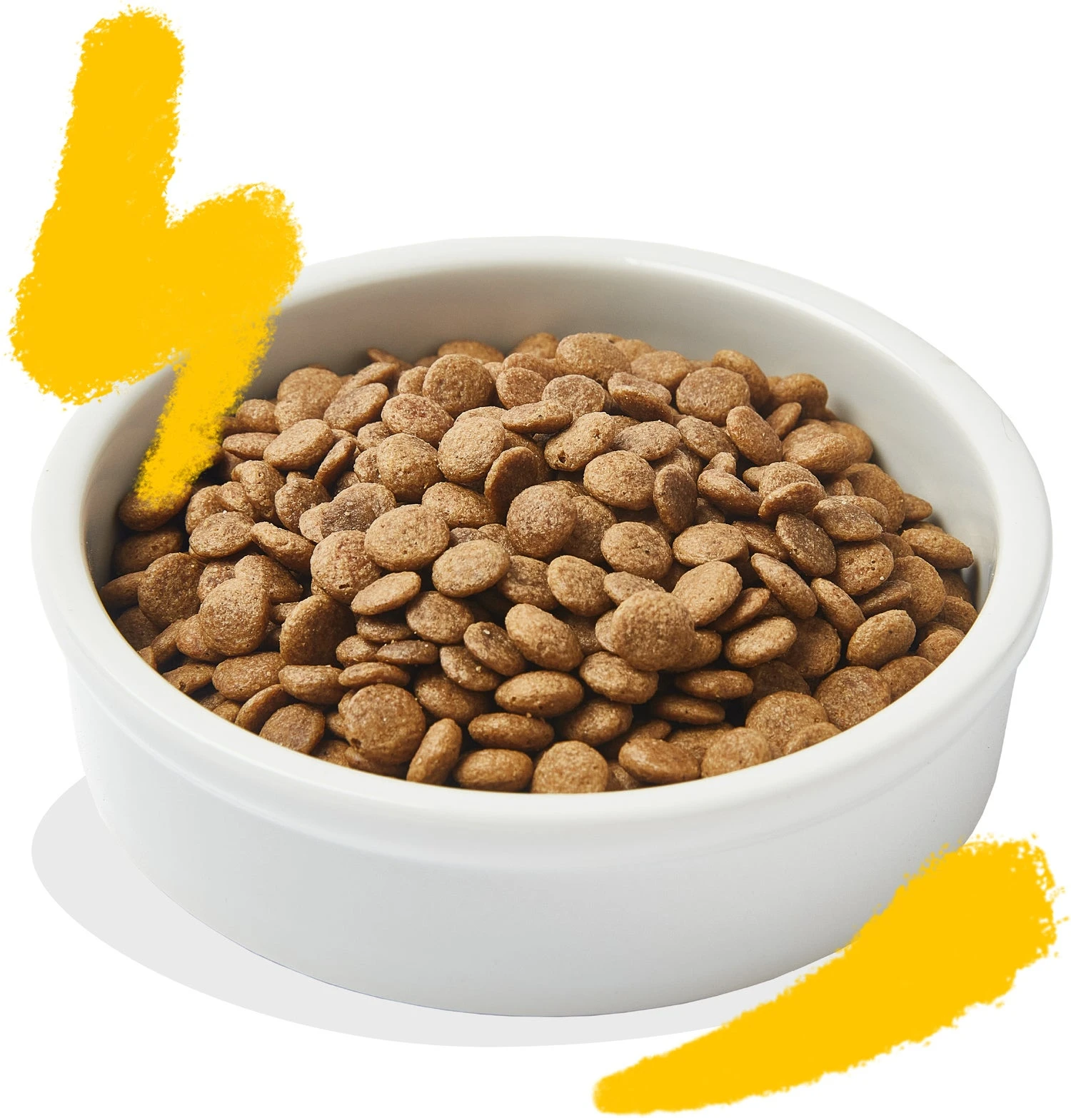 | Ingrediënten | Samenstelling: verse vrije-uitloopkalkoen 26%, verse vrije-uitloopkip 24%, erwten, aardappelen (gedroogd), aardappelzetmeel, aardappeleiwit, mineralen, kipjus, lijnzaad, gist (gedroogd; natuurlijke bron van mannan-oligosachariden (MOS) en bètaglucanen) 1,5%, cichorei (gedroogd; natuurlijke bron van fructo-oligosachariden (FOS) en inuline) 1%, biet (gedroogd), zalmolie 0,5%, cranberry's (gedroogd) 0,003%, salie (gedroogd) 0,003%, valeriaan (gedroogd) 0,003%. Toevoegingsmiddelen: Nutritionele toevoegingsmiddelen per kg: vitamine A 20.000 IE, vitamine D3 1750 IE, vitamine E 250 mg, zink (zinksulfaat-monohydraat) 100 mg, ijzer (ijzer(II)sulfaat-monohydraat) 70 mg, jodium (calciumjodaat, watervrij) 1,5 mg, koper (koper(II)sulfaat-pentahydraat) 10 mg, mangaan (mangaan(II)sulfaat-monohydraat) 30 mg, taurine 1500 mg, DL-methionine 3000 mg, L-carnitine 100 mg. |