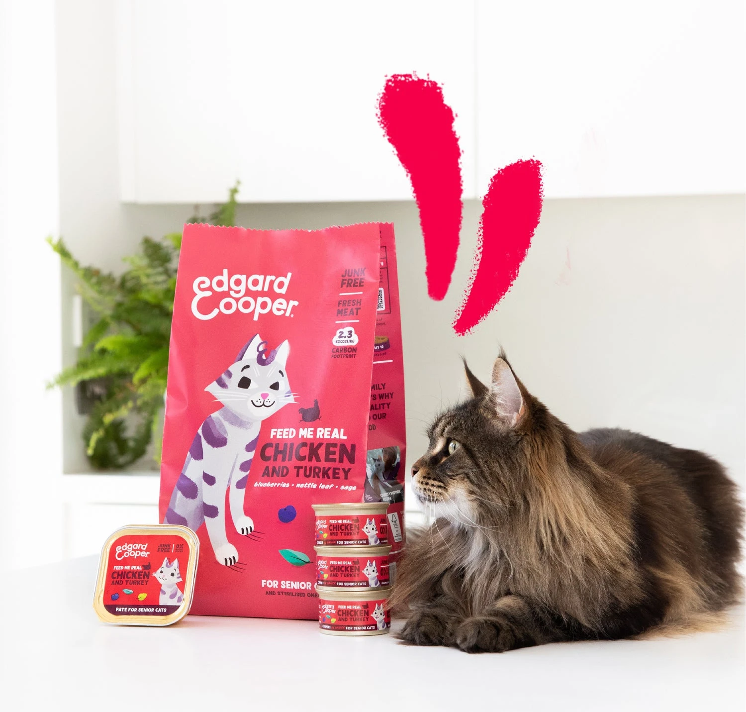 Een handvol blauwe bessen, brandnetelblad en salie zorgen voor nog méér smaak en natuurlijke goodies. Kijk maar hoe je senior zijn pootjes en snorharen aflikt. Mi-wauw!