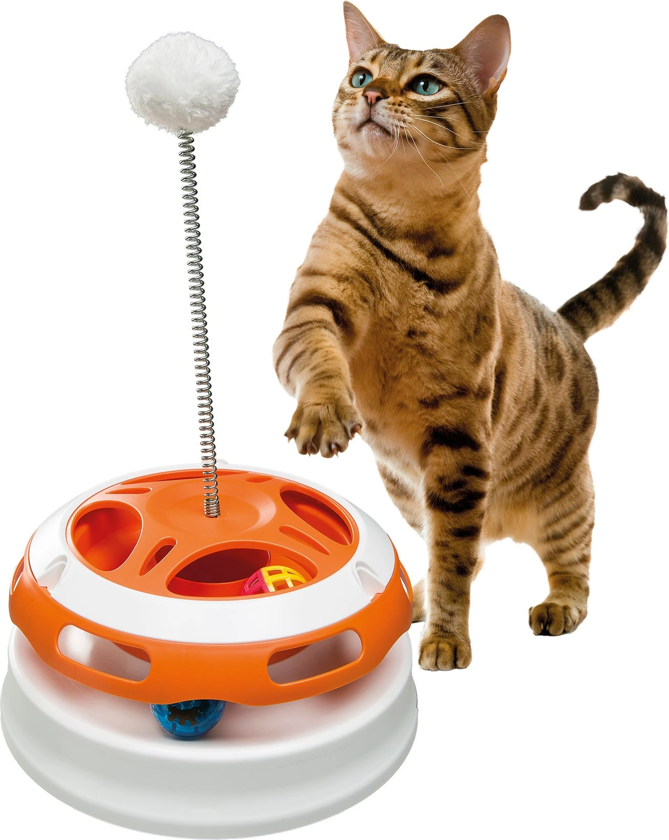 Met kattenspeelgoed Vertigo van Ferplast zal je viervoeter ongetwijfeld veel plezier hebben! Vertigo heeft de mooie vorm van een werveling met veerstang en pompon aan het uiteinde. Aan de basis heeft het een kleine route met 2 ballen; één bal heeft een led-licht, geactiveerd met beweging. De werveling stimuleert de nieuwsgierigheid van je kat en helpt hem zo verveling te verjagen en je relatie te versterken.
