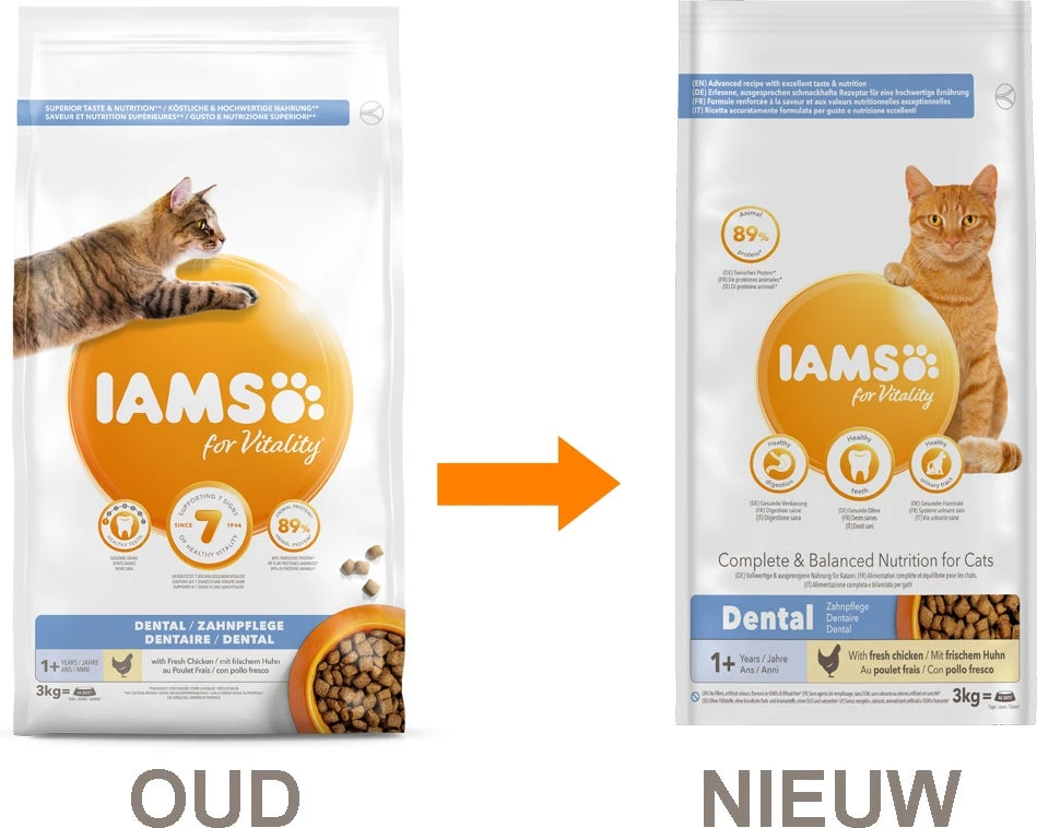 IAMS for Vitality met verse kip is geschikt voor volwassen katten van 1 tot 7 jaar. Het droogvoer is een 100% complete en uitgebalanceerde specialistische voeding, om de gezondheid en vitaliteit van je kat op 7 punten te ondersteunen. Ook houdt de voeding de tanden sterk en gezond.Dit alles zit in een heerlijk recept met 89% dierlijke eiwitten (van het totale eiwitgehalte), waar je kat elke dag weer van kan genieten.