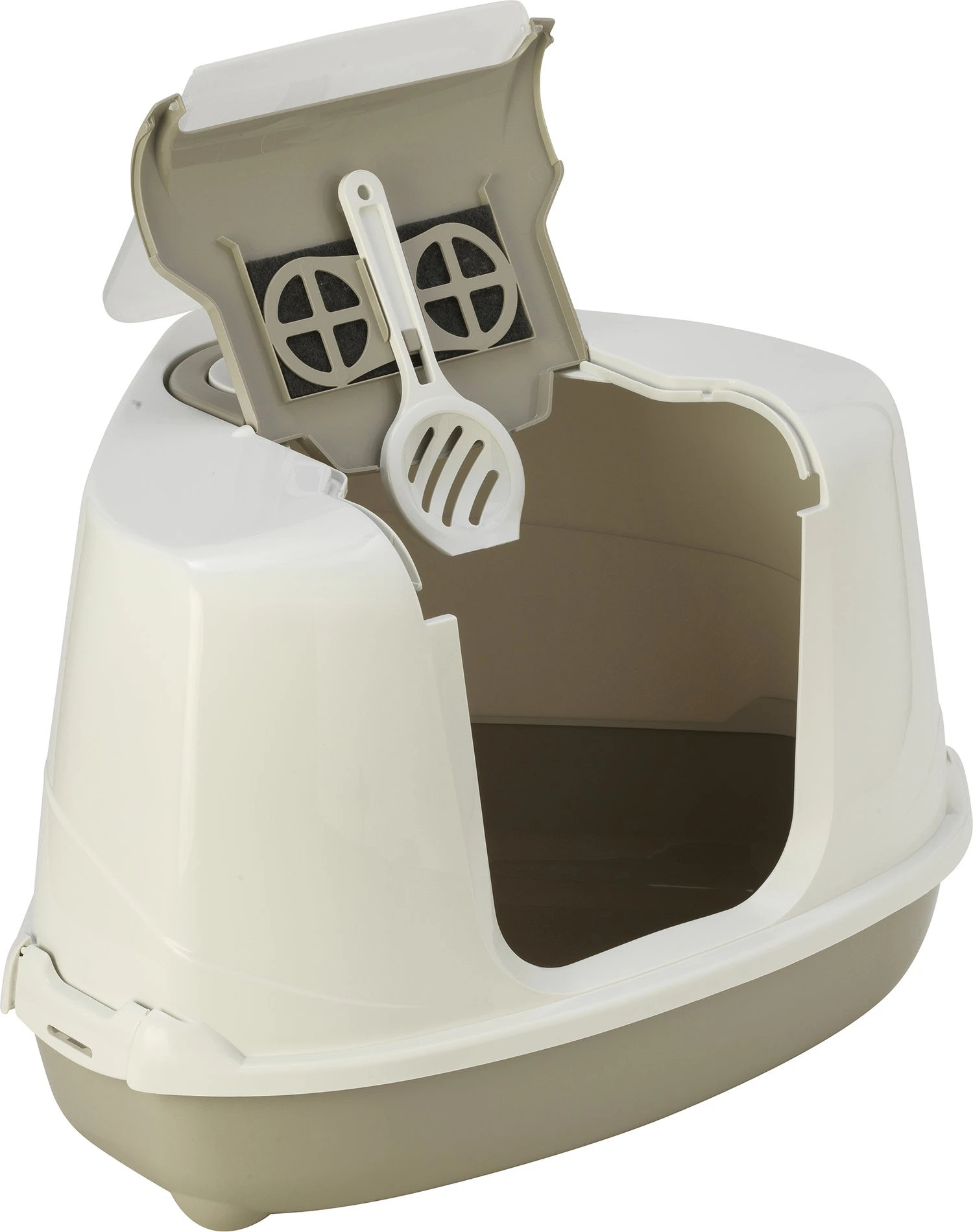 Beschikt over een makkelijk handvat en een licht doorschijnende deur voor extra privacy. De Flip Corner is gemaakt van premium kwaliteit kunststof voor langdurig gebruik. Inclusief kattenbakschep.