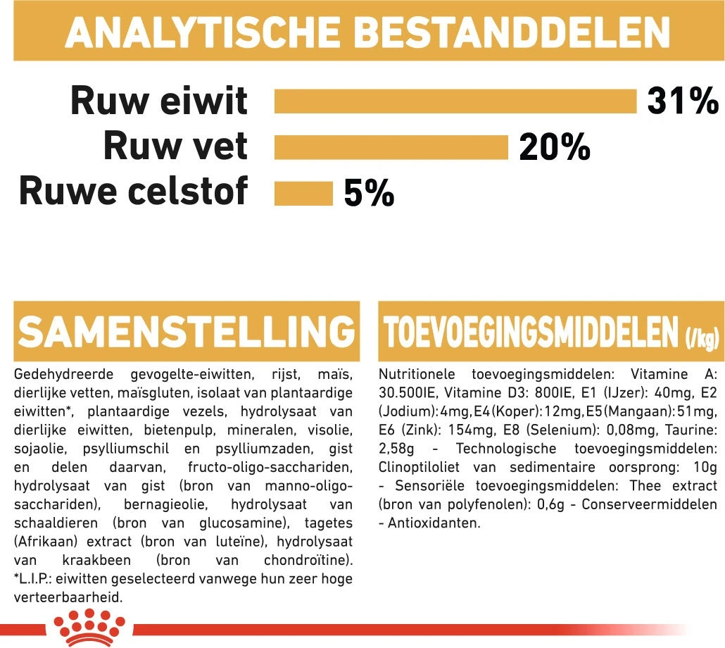 De voeding is verrijkt met taurine en de omega 3 vetzuren EPA en DHA die bijdragen aan de normale werking van het hart. EPA en DHA ondersteunen de botten en gewrichten van je kat. De Maine Coon is bijzonder groot en zwaar en dat vergt nogal wat van haar gewrichten, die daardoor wel wat bijzondere aandacht kunnen gebruiken.